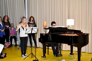 Die Aula des Schulhauses Vitznau wurde gekonnt in eine stilvolle Piano-Bar umgewandelt. Die kleinen Stehtische mit Kerzenlicht liessen eine gemütliche Stimmung aufkommen. Einige Musikschülerinnen und Musikschüler unterhielten die zahlreich erschienen Gäste während dem Apéro mit stimmungsvollen Jazz-Stücken und Evergreens.